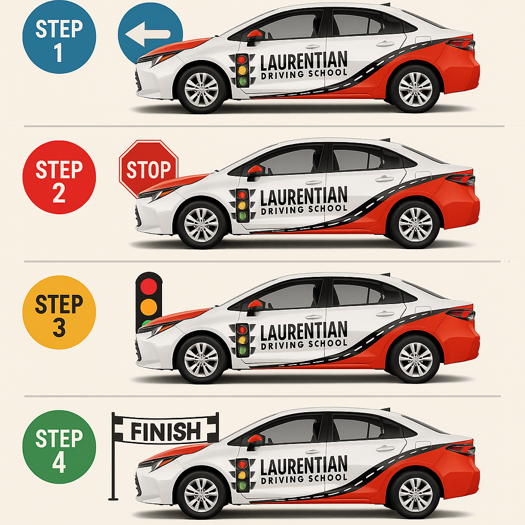 You will practice driving behind the wheel of a Laurentian Driving School car with the instructor beside you. Please ensure you have your G1 licence with you at all times. As per MTO rules, you cannot have passengers in the vehicle with you during training.